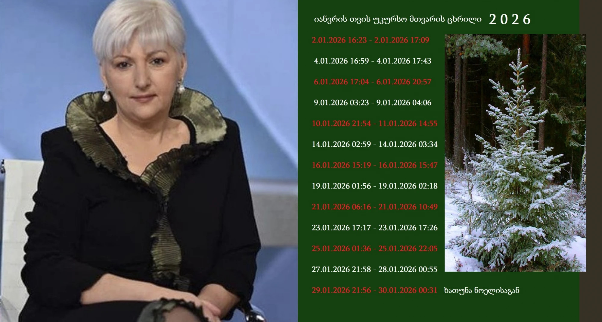 ამჯერად იგი ახალ პოსტს აქვეყნებს, სადაც იანვრის უკურსო მთვარის ცხრილს გვიზიარებს:
