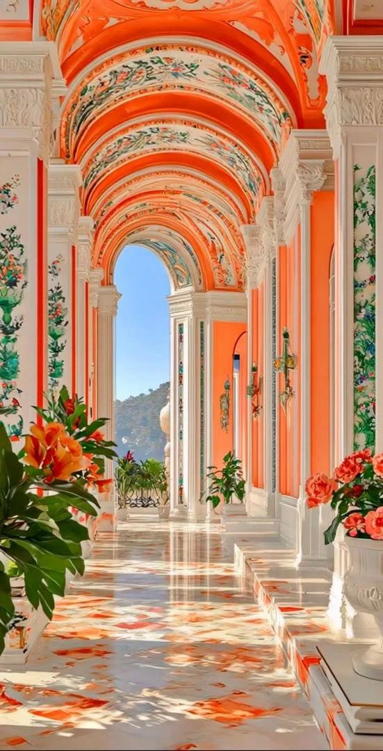ჰარმონიული ფერები: ყვითელი, ნარინჯისფერი, ბორდო.