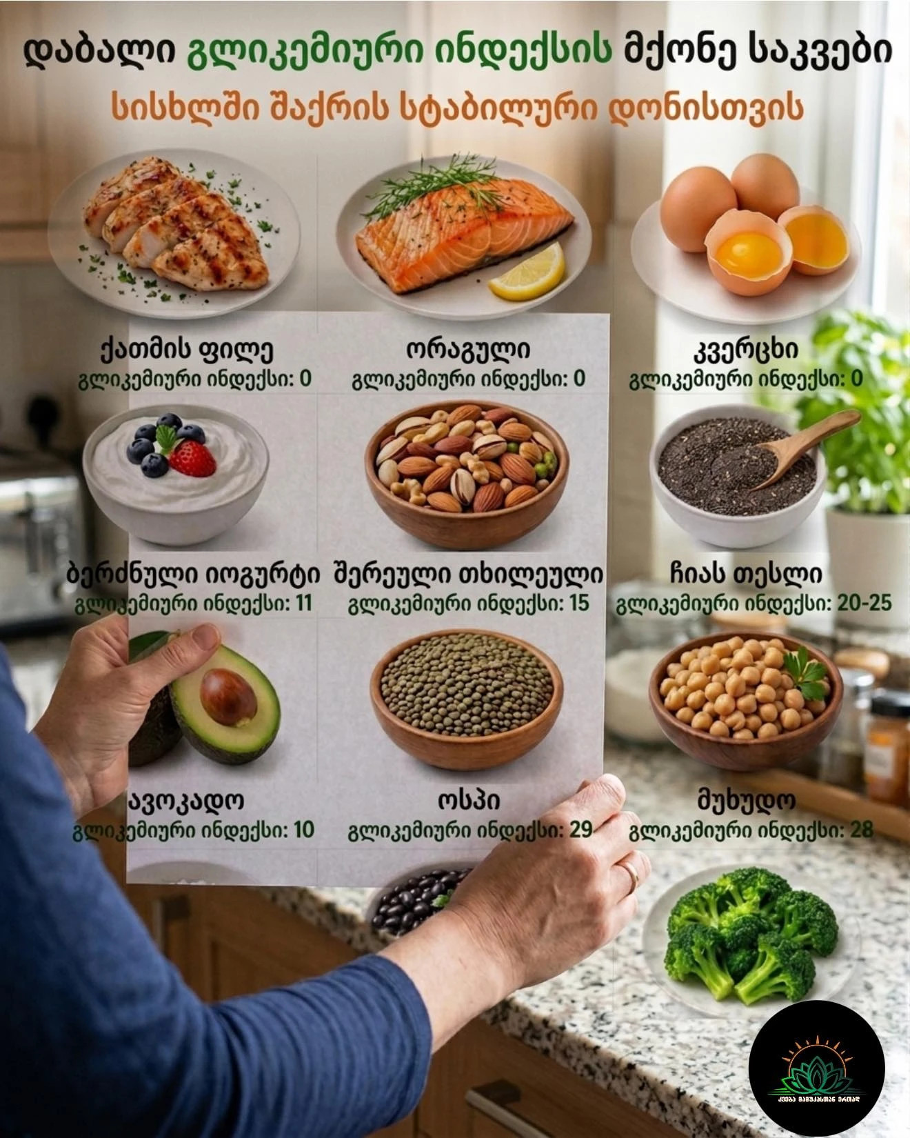 დაბალი გლიკემიური ინდექსის მქონე საკვები, სისხლში შაქრის სტაბილური დონისთვის.