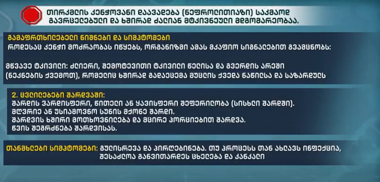 „ეს საკმაოდ გავრცელებული პრობლემაა, განსაკუთრებით საქართველოში. ქვები და კენჭები ჩნდება იმის გამო, რომ ხდება ე.წ. სუპერ-სატურაცია. მარტივად წარმოსადგენი რომ იყოს: ჩვენ წყალში ერთი ან ორი კოვზი შაქარი რომ ჩავყაროთ, არ გამოჩნდება, თუმცა დიდი რაოდენობით ჩაყრის შემდეგ ფსკერზე დაილექება, რადგან მოხდა ზეგაჯერება და მეტი გაჯერება ვერ ხერხდება. ქალებში უფრო ხშირია თირკმელებში კენჭებისა და ქვების გაჩენა; ერთ-ერთი მაპროვოცირებელი ფაქტორი ის არის, რომ ქალები უფრო ნაკლებ წყალს სვამენ“, - ამბობს ზაზა თელია.