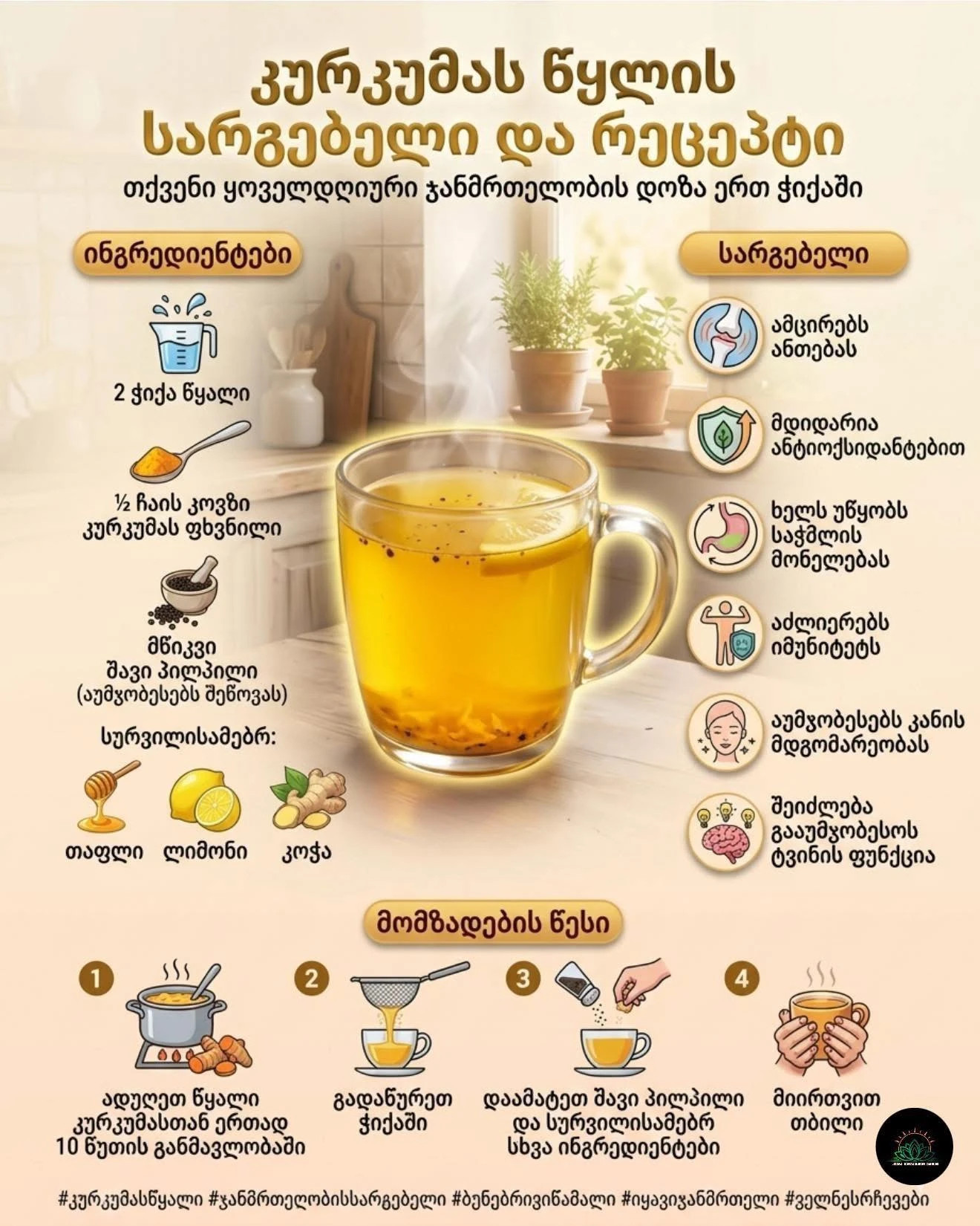 თქვენი ჯანმრთელობის ყოველდღიური რიტუალი - კურკუმას წყალი! 🌟