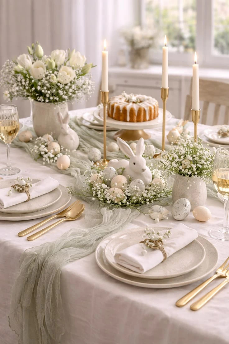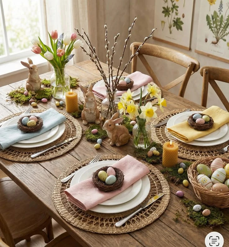 სასურველია ლამაზ თეფშებსა ან ნაქარგ ხელსახოცებს მივანიჭოთ უპირატესობა. სუფრას ელეგანტურობას მატებს თეთრი ან ღია ფერის სუფრა, ლამაზად დაკეცილი ხელსახოცები და სეზონური ყვავილები - ტიტები, ნარცისები ან იები.