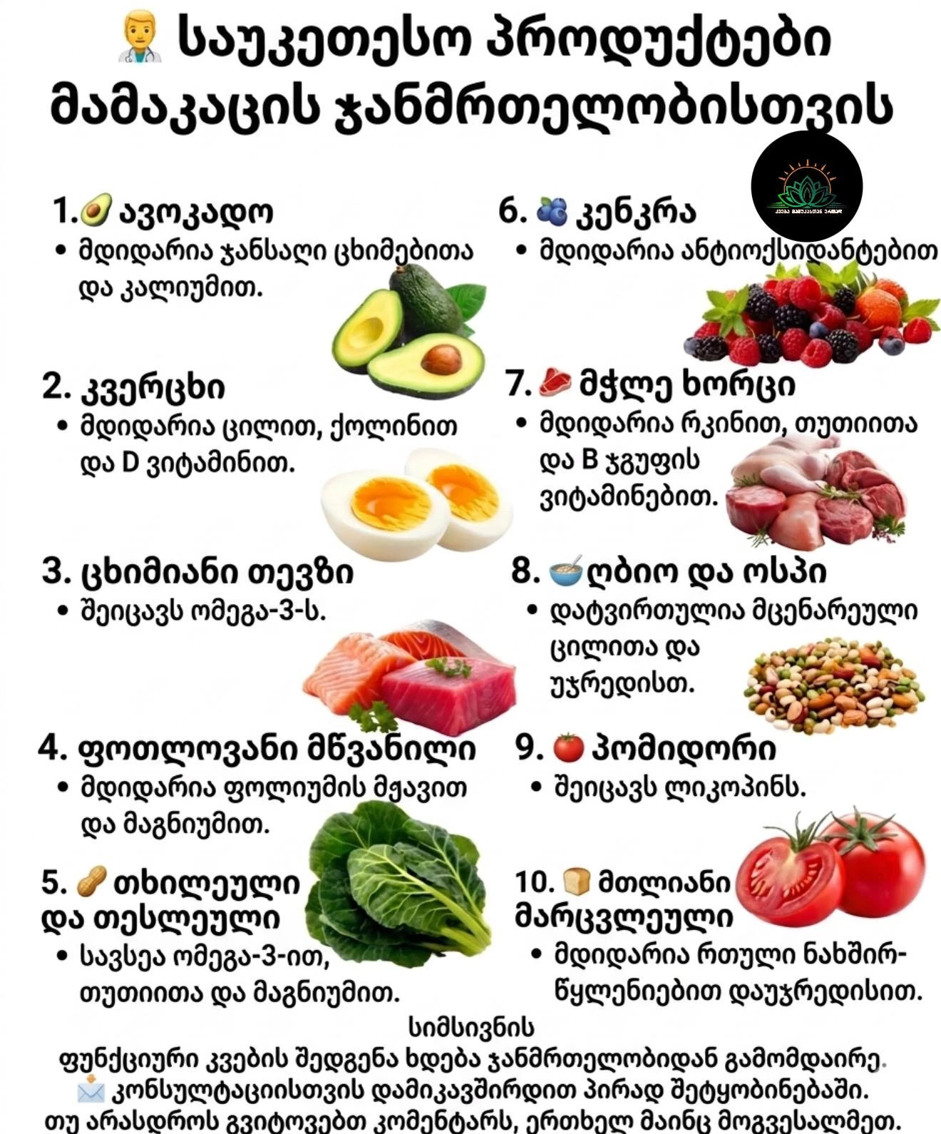 „საუკეთესო პროდუქტები მამაკაცის ჯანმრთელობისთვის.