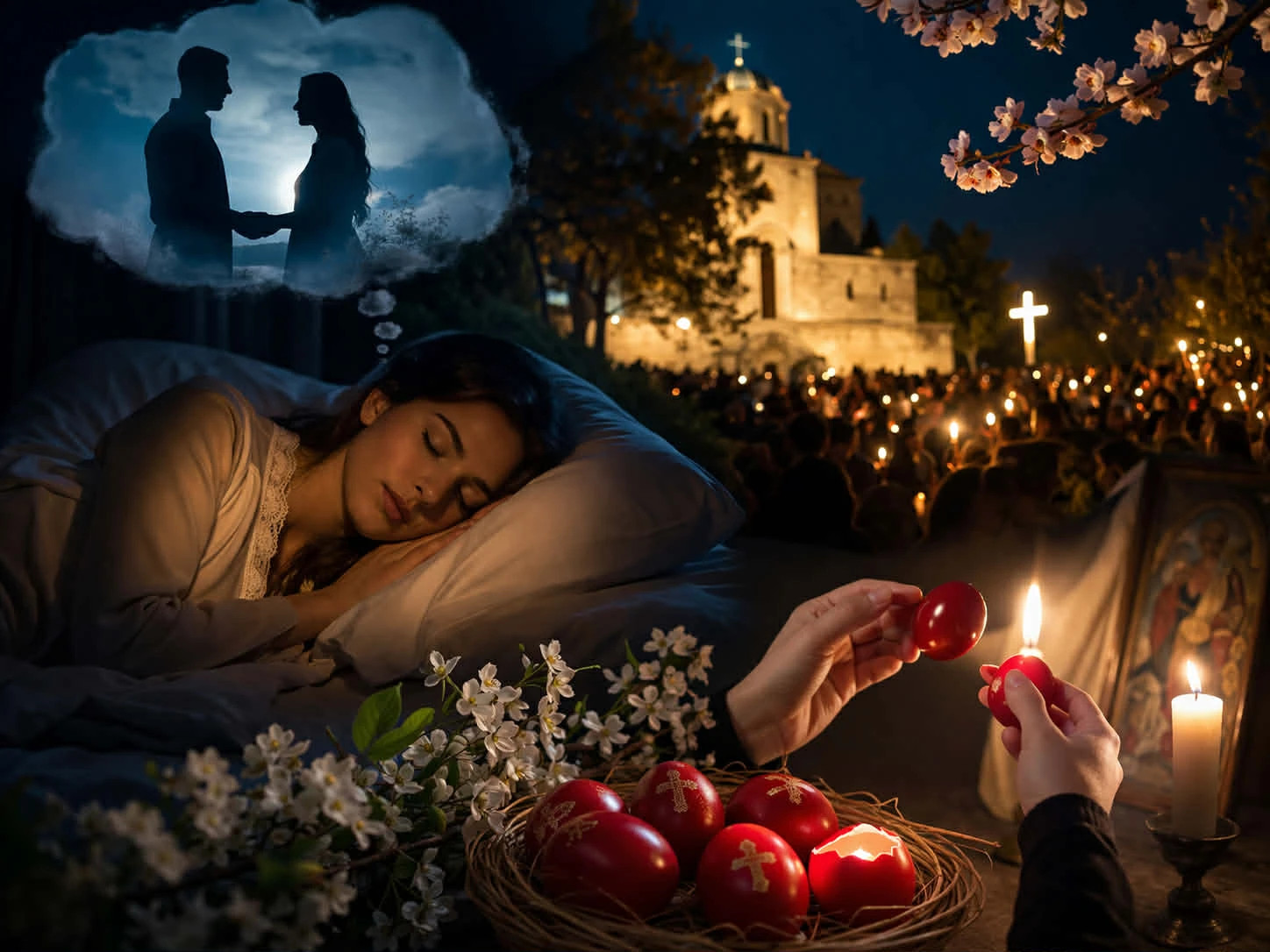 ერთ-ერთი ყველაზე გავრცელებული და ამავდროულად ყველაზე უცნაური რწმენა უკავშირდება აღდგომის ღამეს ნანახ სიზმრებს. ამბობენ, რომ ვინც ამ ღამეს დაიძინებს და სიზმარს ნახავს, მის ცხოვრებაში მნიშვნელოვანი რამ აუცილებლად ახდება. განსაკუთრებით პოპულარულია მოსაზრება, რომ ახალგაზრდა გოგონებს ამ ღამეს შეუძლიათ ნახონ მომავალი მეუღლე.