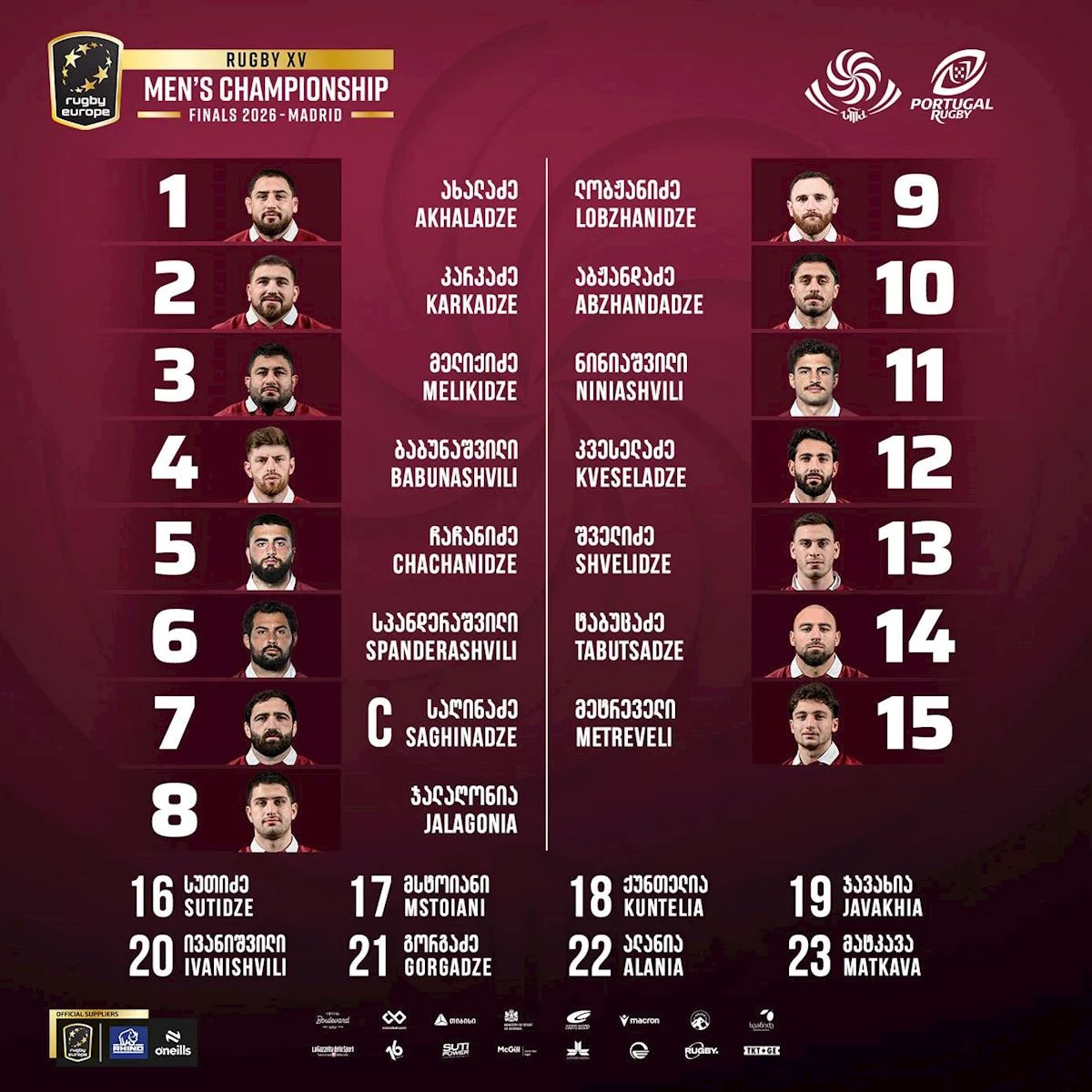 რაგბი ევროპის ფინალური მატჩი მადრიდში, თბილისის დროით 21:45 საათზე დაიწყება. ცნობილია „ბორჯღალოსნების“ შემადგენლობა.