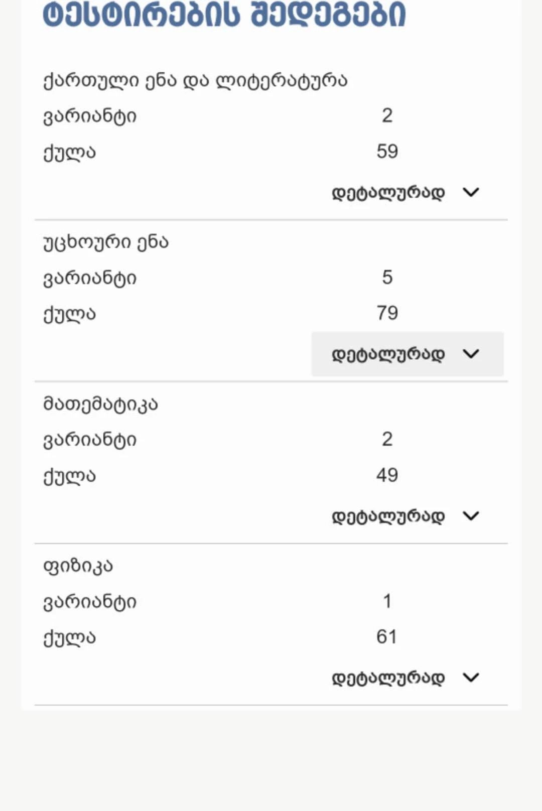 ქართული ენა და ლიტერატურა - 60 - დან 59; უცხო ენა - 80-დან 79; მათემატიკა 51-დან 49; ფიზიკა 63-დან 61 - ასეთია აბიტურიენტ ნიკა ვარდოშვილის შედეგები 2022 წლის ერთიანი ეროვნულ გამოცდებზე.