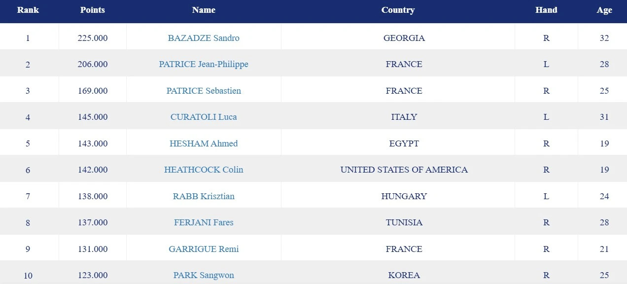 განახლებულ მსოფლიო რეიტინგში მეორე ადგილს სწორედ პატრისი იკავებს 206 ქულით. კლასიფიკაციაში მესამეა (169 ქულით) ასევე ფრანგი სებასტიან პატრისი, მეოთხეზე იტალიელი ლუკა კურატოლია (145 ქულა), ხოლო მეხუთეზე – ეგვიპტელი აჰმედ ჰეშამი (143 ქულა).