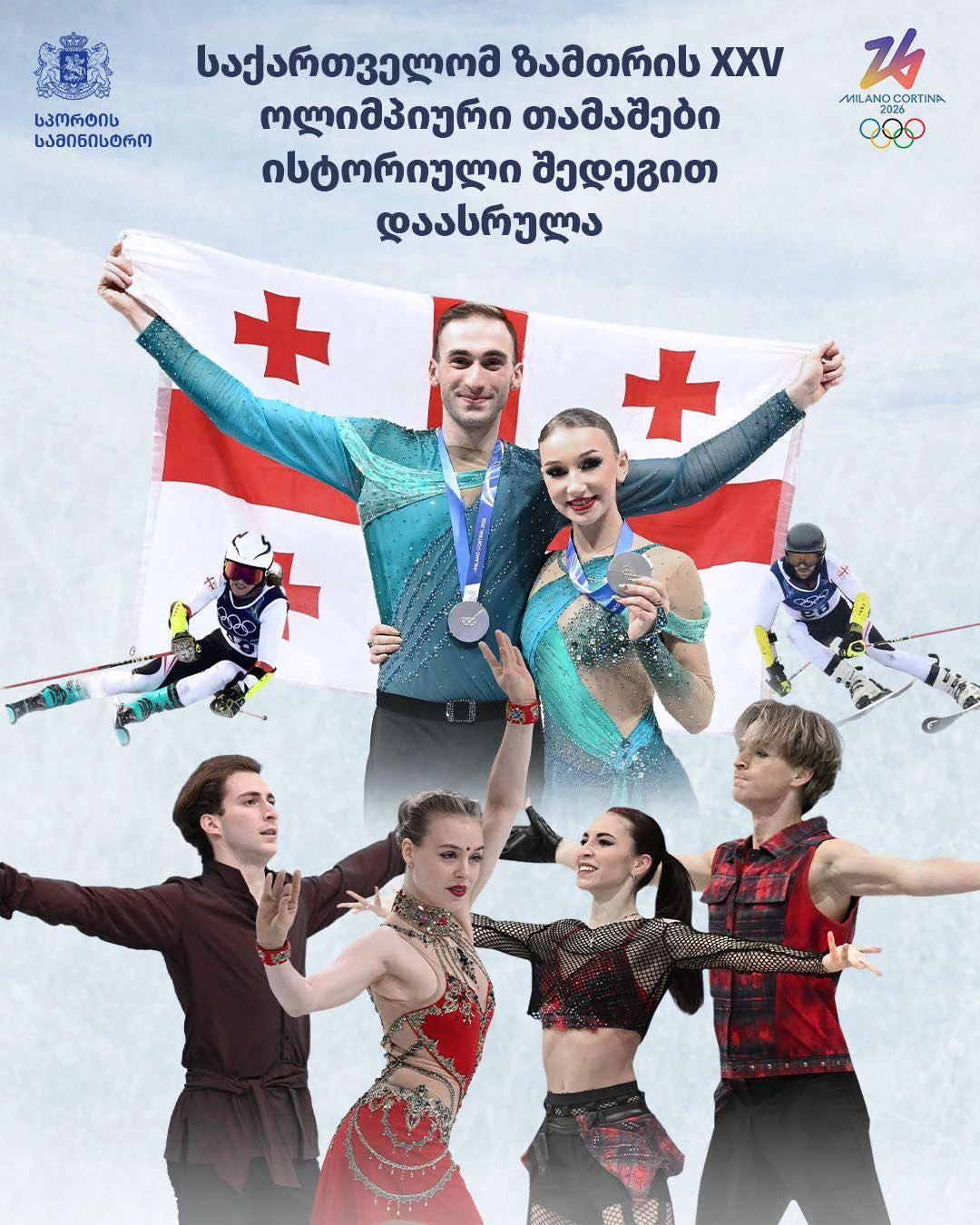 მილანსა და კორტინაში ზამთრის XXV ოლიმპიური თამაშები მიმდინარეობს, თუმცა საქართველოს ოლიმპიურმა ნაკრებმა ოლიმპიადაზე ასპარეზობა უკვე დაასრულა. საქართველომ ზამთრის ოლიმპიურ თამაშებზე ისტორიაში პირველად მედალი მოიპოვა. ლუკა ბერულავასა და ანასტასია მეტელკინას სპორტულმა წყვილმა ფიგურულ ციგურაობაში, ორი პროგრამის ჯამში, 221,75 ქულა დააგროვა და ვერცხლის მედალს დაეუფლა.