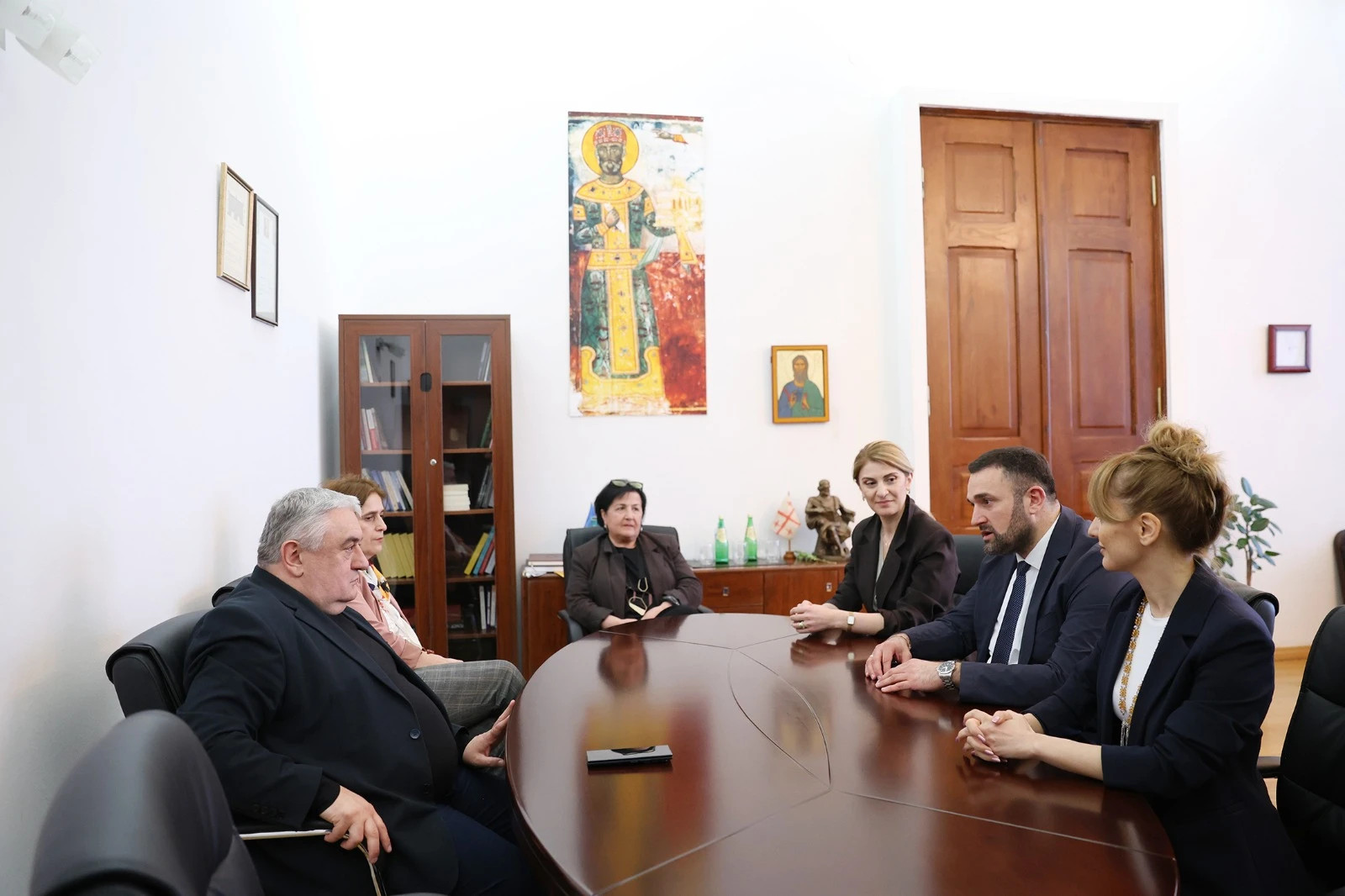 ახალგაზრდებთან შეხვედრის შემდეგ გიორგი კალანდარიშვილმა სამუშაო შეხვედრა გამართა თსუ-ს რექტორ ჯაბა სამუშიასთან, თსუ-ს სოციალურ და პოლიტიკურ მეცნიერებათა ფაკულტეტის დეკან სალომე დუნდუასთან და თსუ-ს სოციალურ და პოლიტიკურ მეცნიერებათა ფაკულტეტის ჟურნალისტიკის მიმართულების ხელმძღვანელ მაია ტორაძესთან, რომლის ფარგლებშიც მხარეებმა არსებული პროექტები, მათი შედეგები და თანამშრომლობის გაღრმავების პერსპექტივები განიხილეს. ცესკოს თავმჯდომარემ რექტორს მადლობა გადაუხადა მრავალწლიანი წარმატებული პარტნიორობისთვის და აღნიშნა, რომ თსუ ერთ-ერთი პირველი სასწავლებელი იყო, რომელიც საარჩევნო სამართლის კურსის ინტეგრირების პროცესში ჩაერთო, წლიდან წლამდე კი მზარდია კურსის გავლის მსურველთა რაოდენობა. შეხვედრას ცესკოს მხრიდან ცესკოს სწავლების ცენტრის დირექტორი ნათია ზაალიშვილი და პრესსპიკერი ნათია იოსელიანი ესწრებოდა.