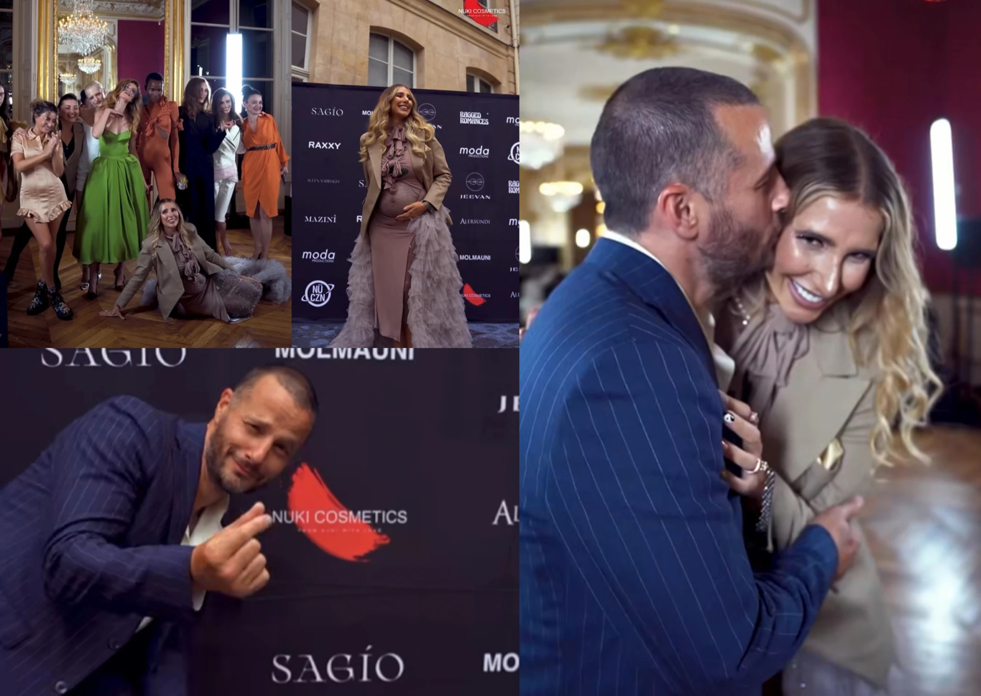 მოდელი და ტელეწამყვანი ნუკი კოშკელიშვილი, რომელიც მეორე შვილის მოლოდინშია მეუღლესთან ერთად პარიზის მოდის კვირეულზე იმყოფებოდა.