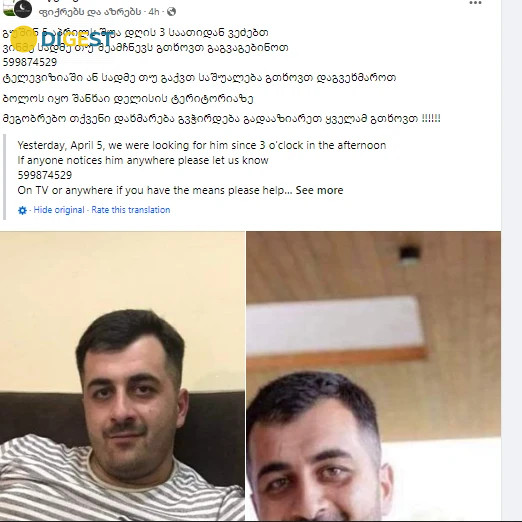 „გუშინ 5 აპრილს შუა დღის 3 საათიდან ვეძებთ.