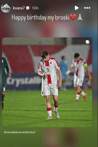 საქართველოს ეროვნული ნაკრებისა და „პსჟ“-ის ფეხბურთელი ხვიჩა კვარაცხელია უმცროს ძმას, თორნიკეს იუბილეს ულოცავს და სოციალურ ქსელში ფოტოს აქვეყნებს.
