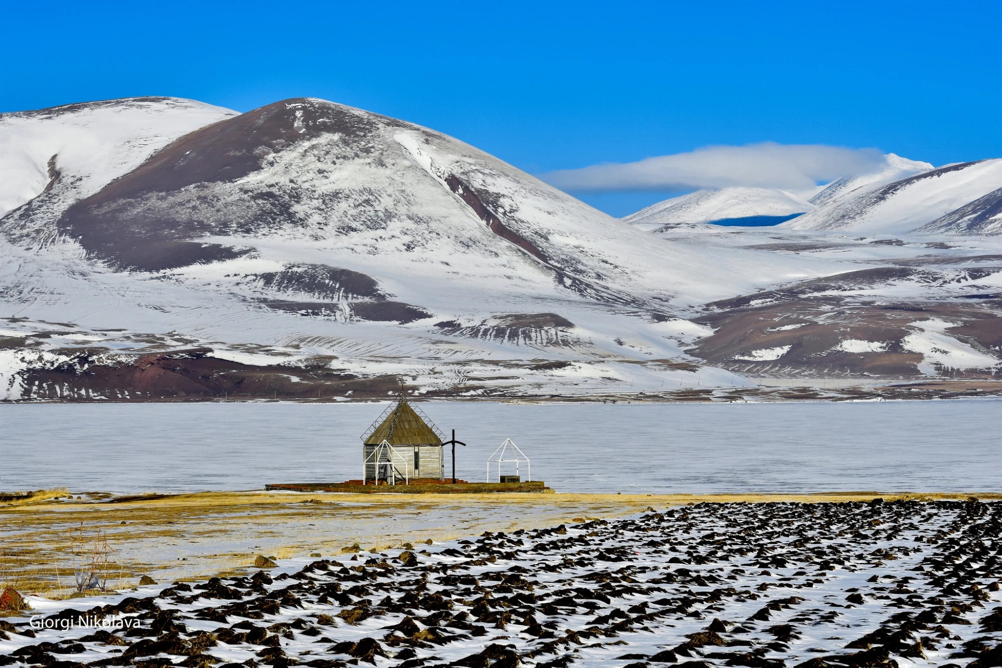ჯავახეთი - გაყინული ფარავნის ტბა“, - წერს გიორგი ნიკოლავა კადრებზე.