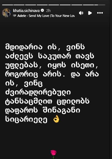 „მდიდარია ის, ვინს აძლევ თავს უფლებას, იყოს ისეთი როგორიც არის და არა ის, ვინც ძვირადღირებული ტანსაცმლით ცდილობს დაფაროს შინაგანი სიცარიელე“, - წერს ხატია სიჭინავა.