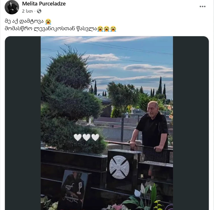„მე აქ დამტოვა. მომასწრო ლევანიკოსთან წასვლა“, - წერს მელიტა ფურცელაძე.