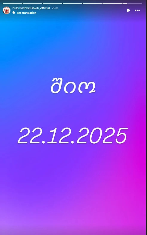 „შიო. 22.12.2025“, - წერს ნუკი კოშკელიშვილი.