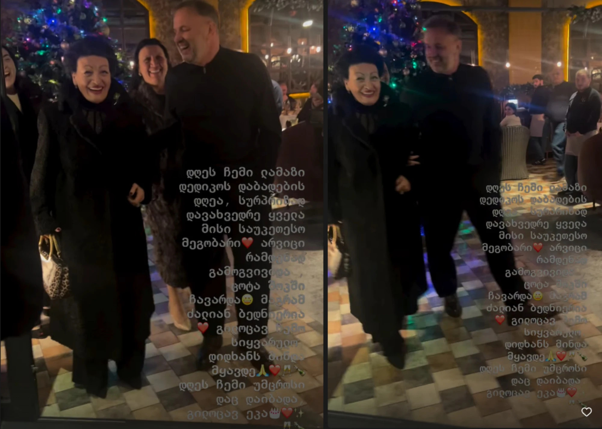 ამჯერად იგი დედის საიუბილეო წვეულებაზე გადაღებულ ვიდეოს აქვეყნებს, საიდანაც ვიგებთ, რომ ნინო ლომთათიძე 80 წლის გახდა.