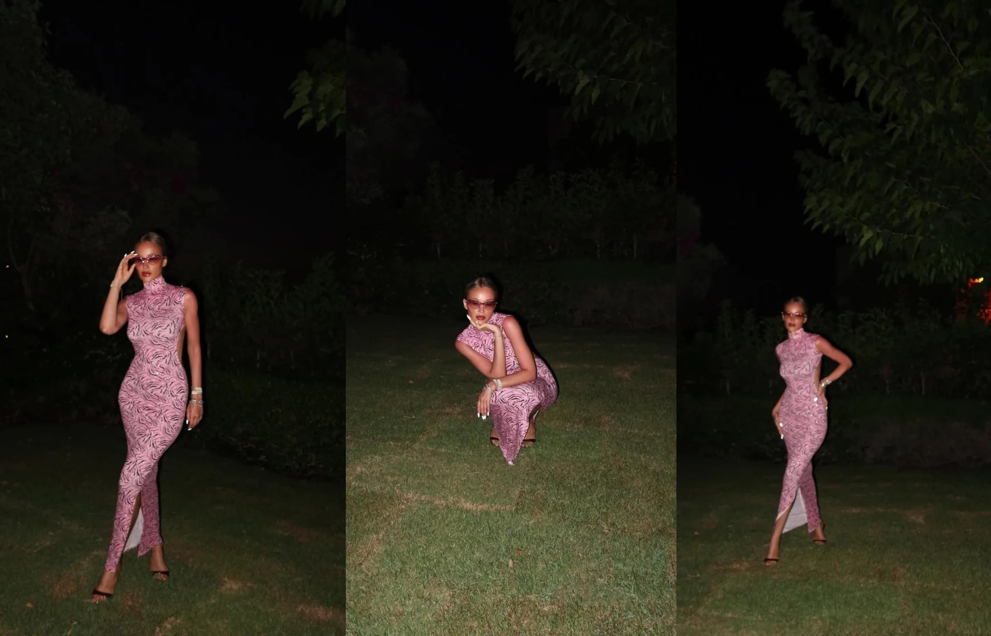 ამჯერად იგი სოციალურ ქსელში ახალ ფოტოებს აქვეყნებს, სადაც ვარდისფერ კაბაში პოზირებს.