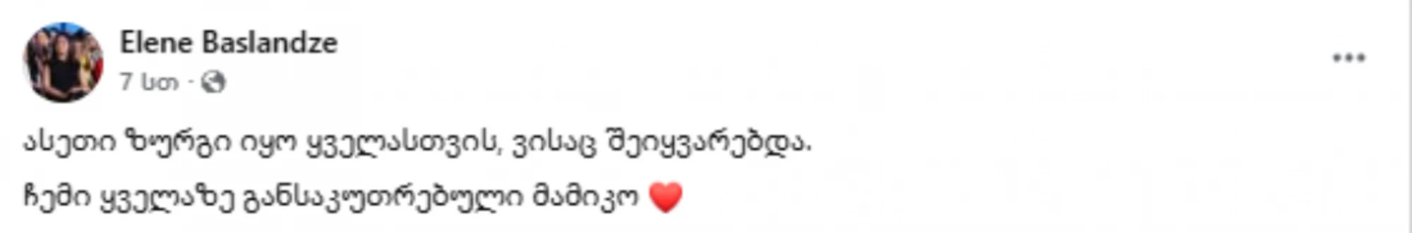 რესტორან „ქვევრის“ მფლობელი და მუსიკალური პროდიუსერის ლაშა ბასლანძის ქალიშვილი, ელენე სოციალურ ქსელში გარდაცვლილ მამაზე წერს.