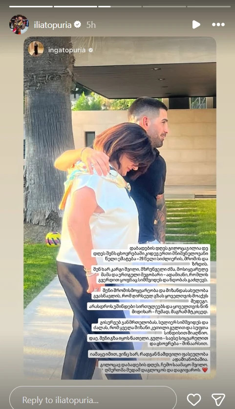 „დაბადების დღეს გილოცავ ილია. დე, დღეს შენს ცხოვრებაში კიდევ ერთი მნიშვნელოვანი წელი ემატება - 29 წელი სიძლიერის, შრომის და ზრდის.