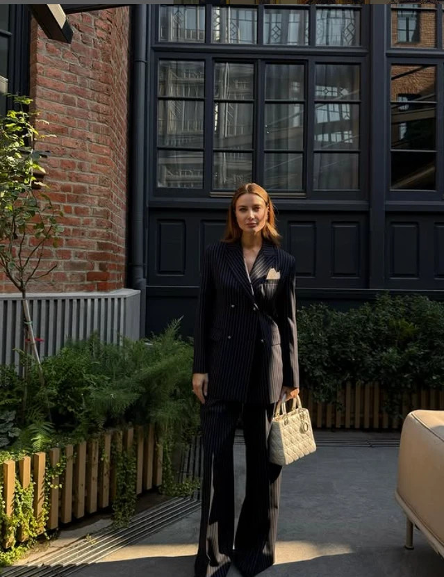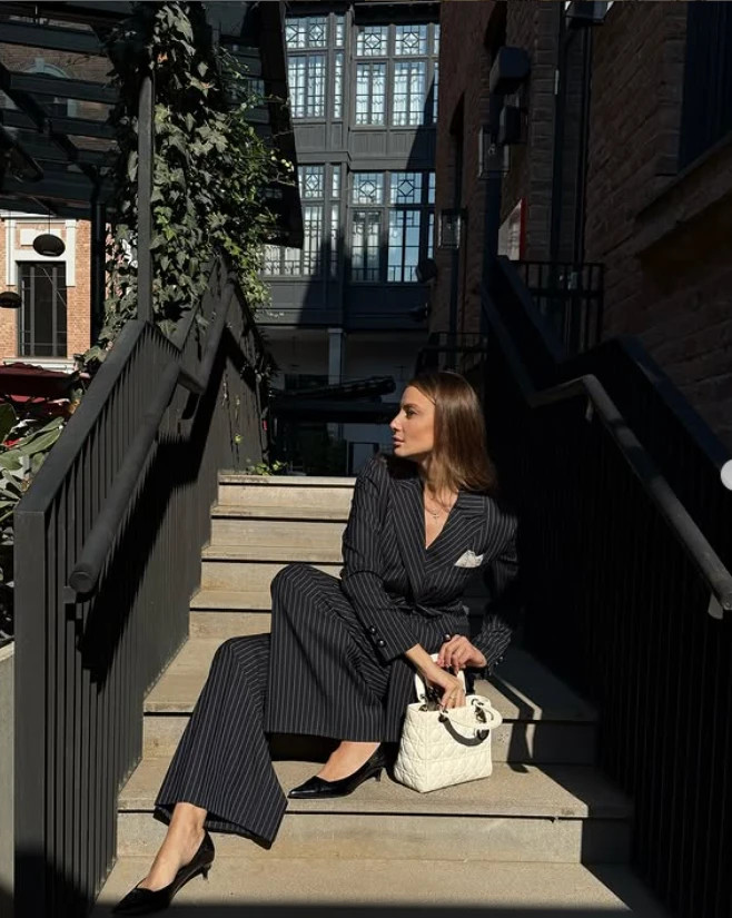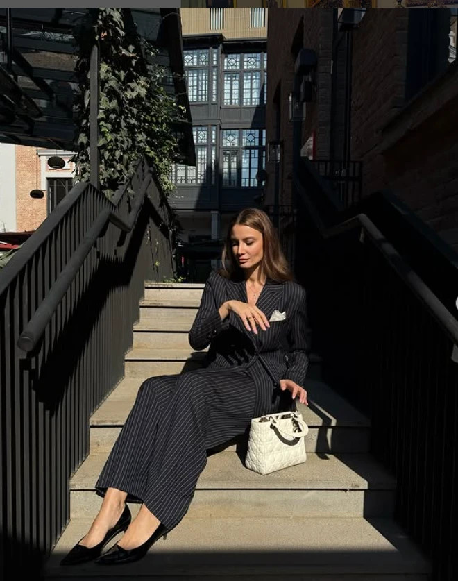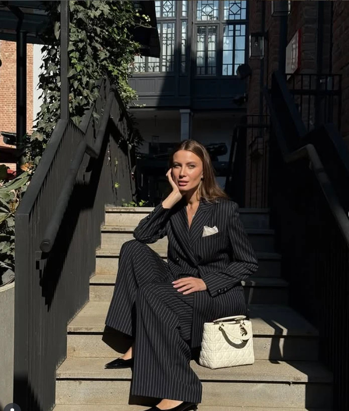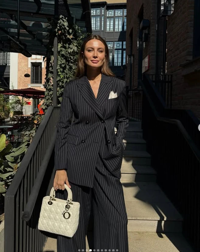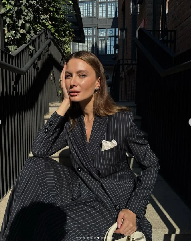 მოდელი ამჯერად გამომწერებს ახალ კადრებს უზიარებს, სადაც პიჯაკში და შარვალში პოზირებს.