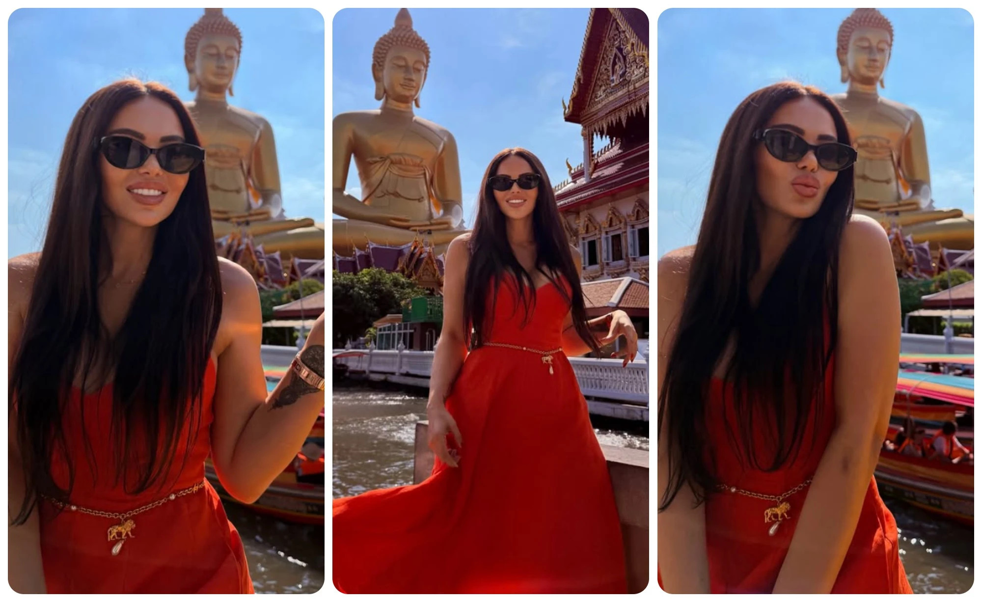 მისი მოგზაურობა კი ამჯერად ბანგკოკში გრძელდება. იგი ახალ ფოტოებს გვიზიარებს, სადაც ცეცხლისფერ კაბაში პოზირებს. როგორც ფოტოებიდან ირკვევა შორენამ ბანგკოკში ყველაზე მაღალი ბუდა მოინახულა: