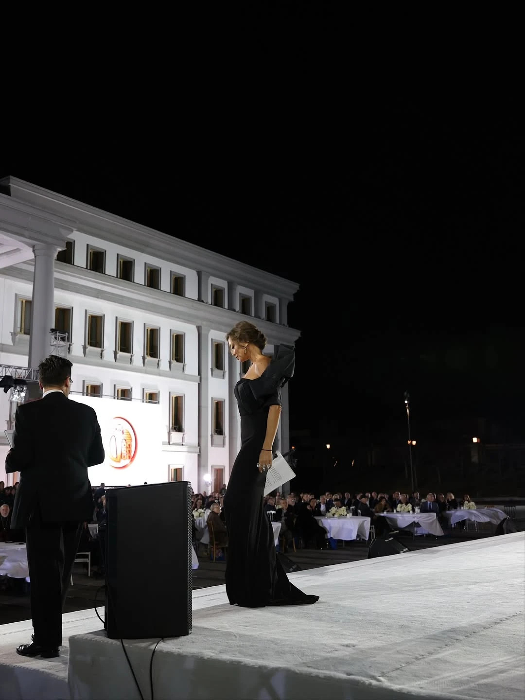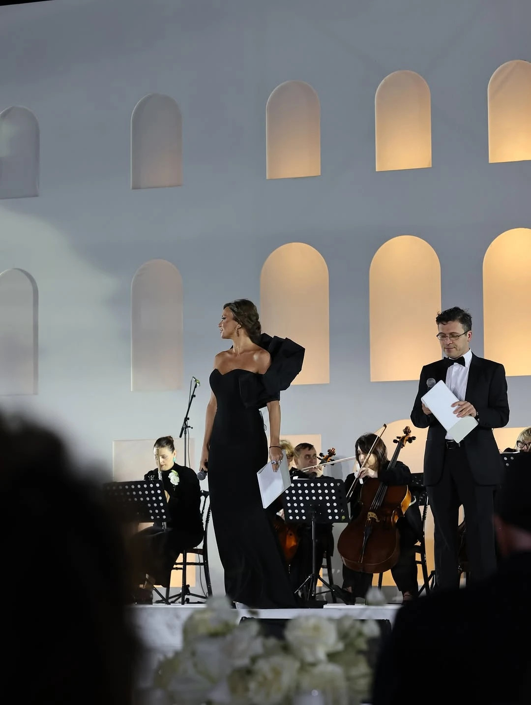 საღამოს ერთ-ერთი წამყვანი ცნობილი ტელეწამყვანი და მოდელი ეკო ფანგანი იყო, რომელმაც შავი ელეგანტური კაბა მოირგო.