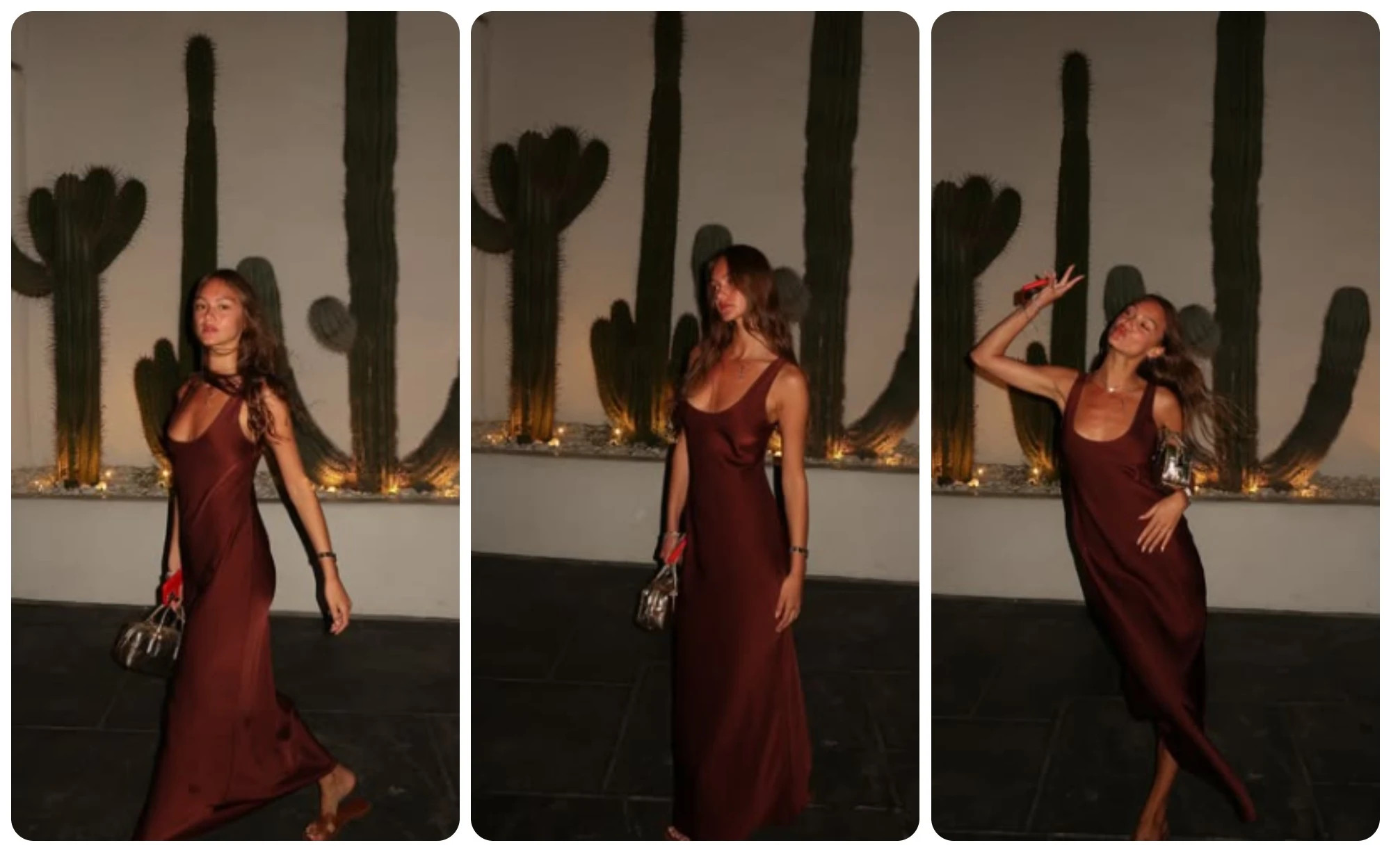 ამჯერად, სალომემ გამომწერებს მორიგი ფოტოები გაუზიარა, სადაც ულამაზეს ყავისფერ კაბაში პოზირებს: