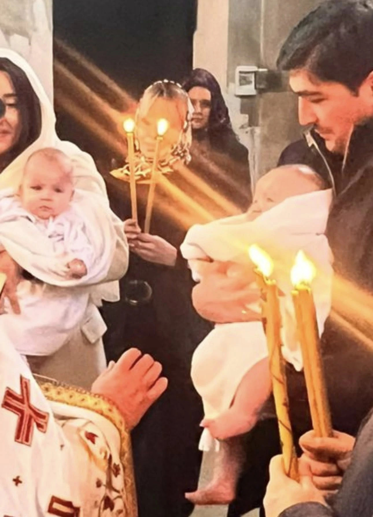 ნათლობის ცერემონიალი ფერიის მთაზე მდებარე მონასტერში მამა ბართლომემ შეასრულა. როგორც ფოტოებიდან ირკვევა, პატარების ნათლიები არიან ნატო დუმბაძე და პროდიუსერი გია გუმბერიძე.