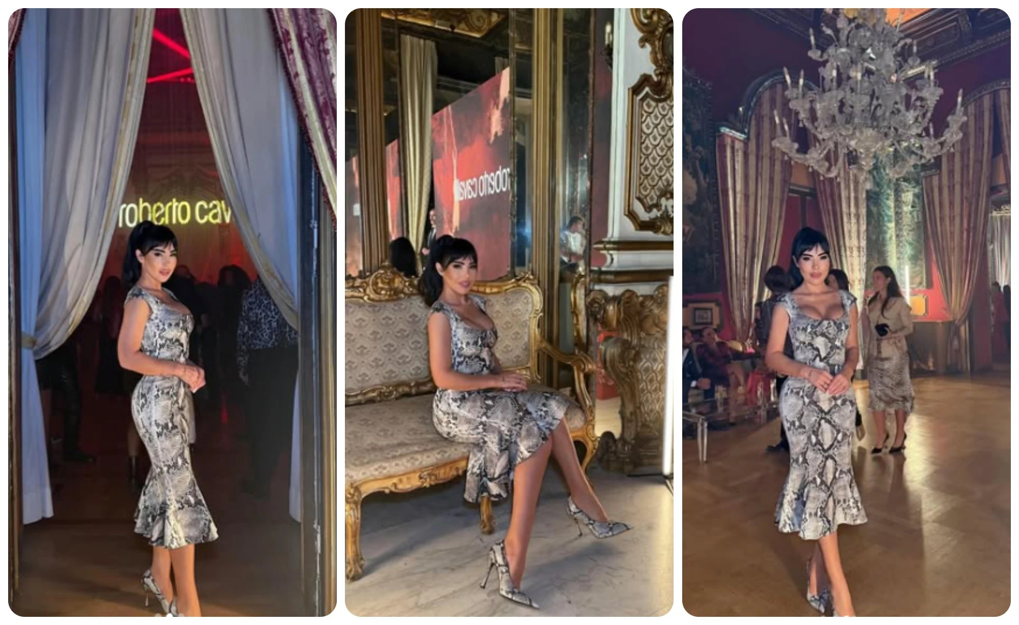 ამჯერად იგი რომში იმყოფება, სადაც რობერტო კავალის დახურულ წვეულებაზე მიიწვიეს. მას დიზაინერის ულამაზესი ჭრელი კაბა ეცვა: