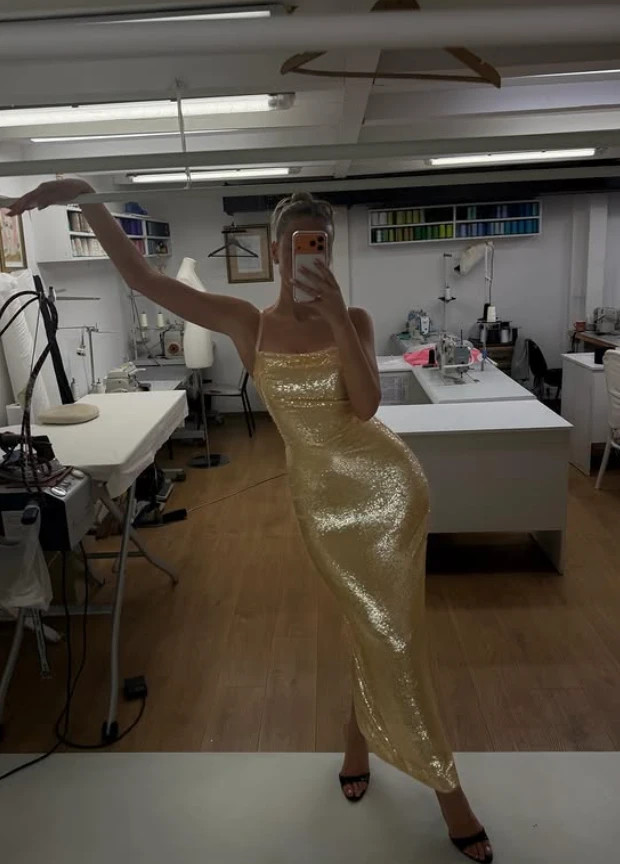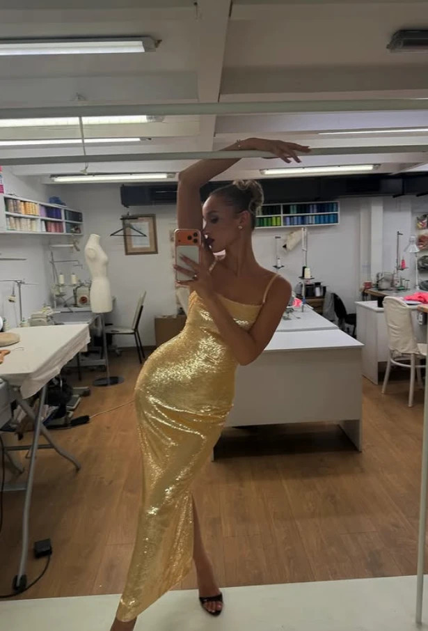 ამჯერად იგი სოციალურ ქსელში ახალ ფოტოებს აქვეყნებს, სადაც ულამაზეს ოქროსფერ კაბაში პოზირებს.